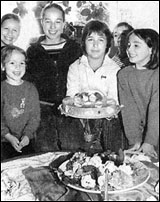 Im praktischen Teil durfte jeder aussuchen, ob er lieber Rosenöl oder -essig, Rosenhonig, Badesalz, Potpourri oder Rosentee machen wollte. Die wichtigsten Ingredienzien waren dabei Rosenöl, Rosenwasser und getrocknete Rosenblüten, die Maria Riedl aus dem Iran bezogen hatte. "Dort ist das Klima sehr viel rosenfreundlicher, so dass die Pflanzen dort besser wachsen und intensiver duften", erklärte sie. Zum Mittagessen gab es natürlich ein "Rosenmenü": Salat mit Rosenblättern, Baguette mit Rosenbutter und als Nachtisch einen Rosenkuchen.